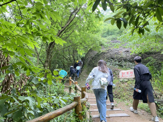 綠色健康毅行,再走革命路。為了切身體會革命先烈在大山之間的艱苦生活,團員青年進行了“再走革命路”健康毅行活動。一路上大家彼此幫助、相互鼓勵,沿著蜿蜒的山路不斷向上。歷經(jīng)2個多小時的跋涉,全體團員青年成功抵達(dá)山頂。立于山頂,長風(fēng)撲面,放眼四望,巍巍群山盡收眼底,一時間,感嘆祖國山河壯麗的自豪之情油然而生,大家情不自禁地吟出“會當(dāng)凌絕頂,一覽眾山小”“江山如此多嬌”等詩句,用最“純情”的方式,向偉大祖國“告白”。
