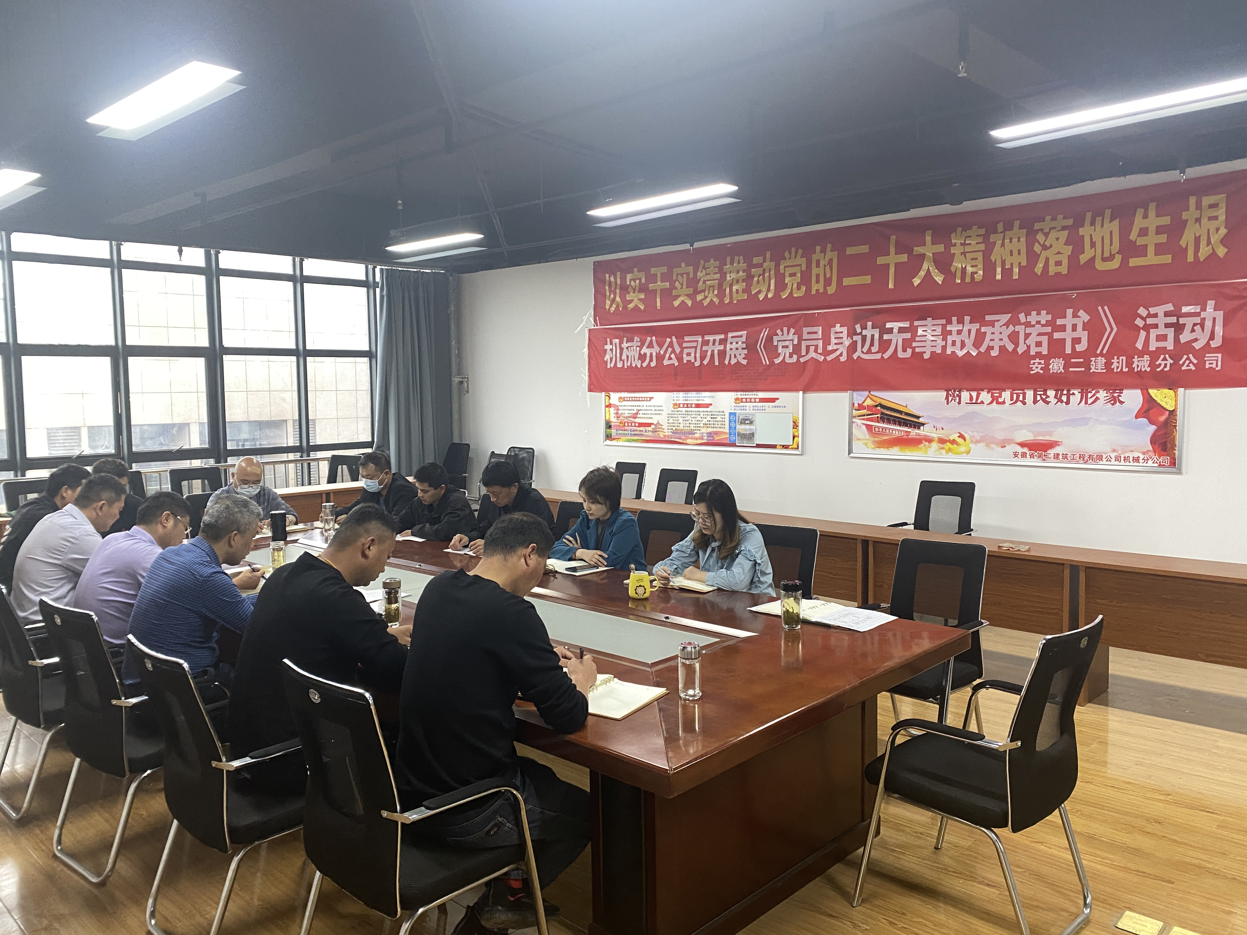 為充分發(fā)揮黨員干部安全生產(chǎn)模范帶頭作用,增強黨員干部安全生產(chǎn)責(zé)任心,牢固樹立“人人講安全,人人會應(yīng)急”的安全主題。近日,機械分公司黨支部在會議室開展了簽訂“黨員身邊無事故安全承諾書”活動。