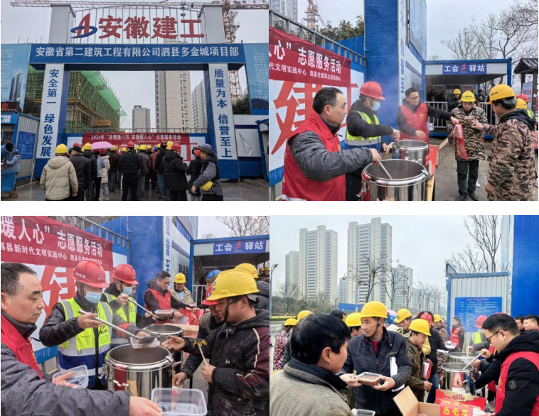 1月18日,第一公司泗縣多金城項目部聯(lián)合主管部門開展了“濃情臘八節(jié) 粥香暖人心”公益志愿服務(wù)活動,項目部連續(xù)三年開展此類公益活動,每年的臘八前夕項目管理人員都會提前準(zhǔn)備糯米、小米、紅豆、蓮子等制作食材,用兩個多小時精心熬制兩大桶熱騰騰的臘八粥,為堅守在崗位上的工人送上溫暖和關(guān)懷。