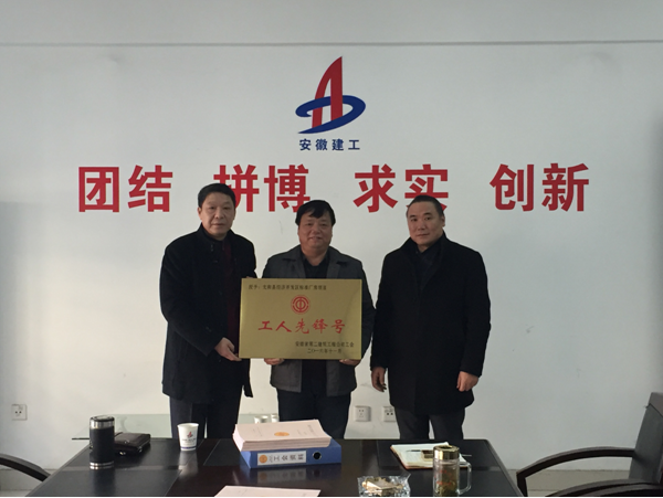 隨后,李主席代表安徽二建工會授予海外公司太和標準廠房項目部“工人先鋒號”稱號。