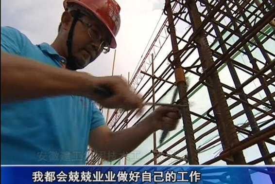 在商務(wù)樓十四層梁柱鋼筋綁扎作業(yè)施工現(xiàn)場(chǎng),項(xiàng)目部鋼筋班組工人張學(xué)亮接受了電視臺(tái)的采訪,他向記者重點(diǎn)介紹了項(xiàng)目工程目前的施工進(jìn)展情況、工作進(jìn)度節(jié)點(diǎn)安排、夏季防暑降溫工作安排和平時(shí)在工作中遇到的施工工藝上的重難點(diǎn)問題所做出的積極努力。