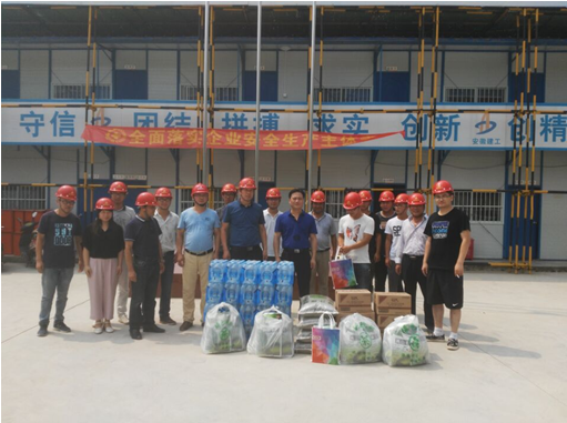 7月17日-7月27日,安徽二建公司總經(jīng)理許業(yè)勇、黨委書記劉賢奇等領(lǐng)導(dǎo)班子成員頂高溫、冒酷暑,分別對(duì)所屬23個(gè)自營項(xiàng)目部開展“送清涼”慰問活動(dòng)。為在高溫下仍堅(jiān)守工作崗位的一線人員送去了綠豆、白糖、茶葉、香皂、驅(qū)蚊花露水、風(fēng)油精、人丹、藿香正氣丸等防暑降溫物品,感謝他們戰(zhàn)高溫,付出辛勤汗水確保公司生產(chǎn)穩(wěn)定發(fā)展。