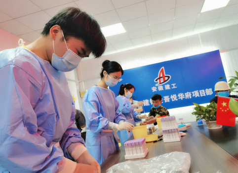 根據(jù)《安徽二建公司“我為群眾辦實事”實踐活動方案》文件精神,6月3日上午,銅陵吾悅?cè)A府項目部特邀銅陵市疾控中心人員來項目,為一線工人進行免費體檢。