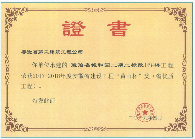 黃山杯(琥珀名城和園二期二標段16#樓)