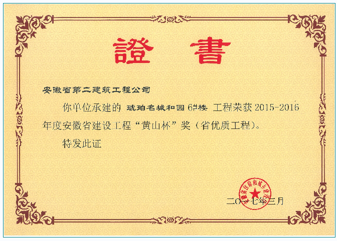 黃山杯(琥珀名城和園6#樓)