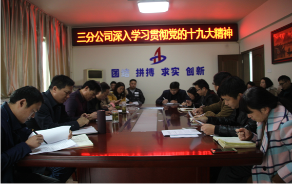 學(xué)習(xí)中,與會黨員認真研讀了報告,并就黨的十九大主題、中國共產(chǎn)黨歷史使命、習(xí)近平新時代中國特色社會主義思想、堅定不移全面從嚴治黨,以及貫徹新發(fā)展理念、建設(shè)現(xiàn)代化經(jīng)濟體系等章節(jié)和內(nèi)容進行了重點學(xué)習(xí)領(lǐng)會。與此同時,三分公司黨支部書記陳習(xí)武對如何進一步學(xué)習(xí)貫徹黨的十九大精神提出了三點要求,他強調(diào):一是要把學(xué)習(xí)好貫徹好十九大精神作為當(dāng)前和今后一段時期的首要政治任務(wù),認真學(xué)習(xí)領(lǐng)會核心要義和精神內(nèi)涵,始終在思想上、政治上、行動上與習(xí)近平總書記為核心的黨中央保持高度一致;二是創(chuàng)新學(xué)習(xí)方式方法,堅持學(xué)以致用。要通過報紙、電視和網(wǎng)絡(luò)等多種平臺,通過集中學(xué)習(xí)、自學(xué)等方式,全面、準確、深入地學(xué)習(xí)領(lǐng)會大會提出的一系列新思想、新提法、新觀點、新舉措,并要堅持以學(xué)促做,切實用十九大精神指導(dǎo)實踐、推動工作;三是每位黨員都要制定學(xué)習(xí)貫徹黨的十九大精神計劃,明確學(xué)習(xí)時間節(jié)點,嚴格落實,黨支部將把學(xué)習(xí)貫徹黨的十九大精神作為民主評議黨員的一項重要內(nèi)容。