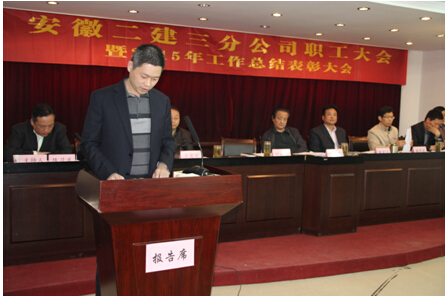 分公司黨支部書記陳習(xí)武在會議上就2015年分公司黨務(wù)、工會工作做了總結(jié)發(fā)言,并強調(diào)2016年分公司黨務(wù)、工會工作要繼續(xù)以“全面貫徹黨的十八大、十八屆三中、四中、五中全會精神,深入落實集團首屆職代會精神及二建公司十五屆三次職代會精神”為主要工作,夯實基礎(chǔ),充分發(fā)揮群團組織作用,加強宣傳思想政治工作,推動企業(yè)企務(wù)公開,堅持黨風(fēng)廉政建設(shè)和反腐倡廉工作,為促進企業(yè)和諧穩(wěn)定發(fā)展保駕護航。