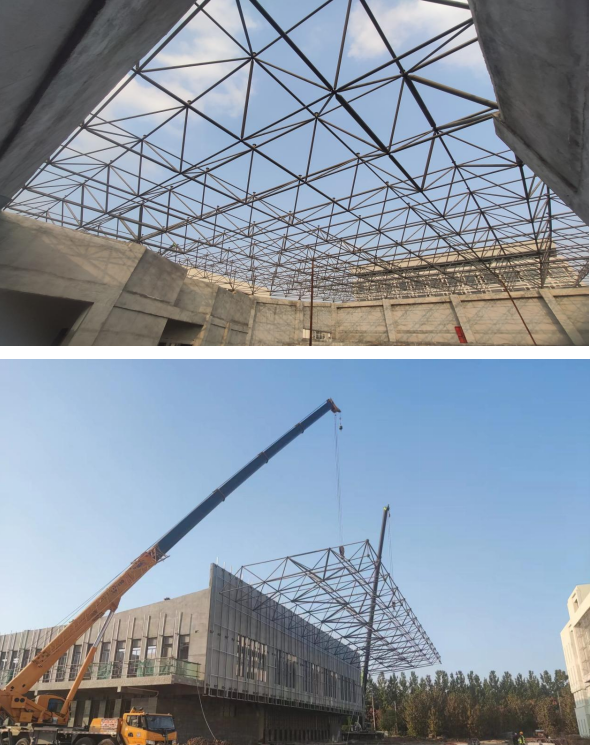 目前,體育中心鋼網(wǎng)架起頭部分已吊裝完成,為下一步順利施工奠定基礎(chǔ)。項目團隊將繼續(xù)以高標(biāo)準(zhǔn)、嚴(yán)要求,提高工程質(zhì)量,完成項目建設(shè)目標(biāo)。